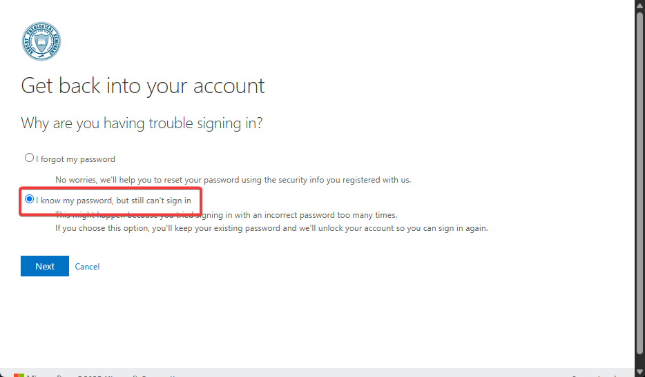 You will be asked why you are having trouble signing in; click I know my password, but still can’t sign in.